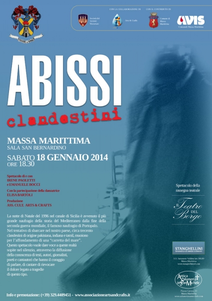 Uno spettacolo che rievoca la tragedia della notte di Natale del 1996, il naufragio di Portopalo. "Abissi-clandestini" parla della più grande tragedia del Mediterraneo dalla seconda guerra mondiale a oggi, quando 300 clandestini di origine pakistana, indiana e tamil morirono per l'affondamento di una "caretta del mare" nel canale di Sicilia. Con questo spettacolo viene data voce a queste realtà sopite nel silenzio, attraverso la diffusione e la conoscenza di testi, autori, giornalisti, poeti e cantautori che hanno avuto il coraggio di parlare, cantare e rievocare il dolore legato a queste tragedie.
