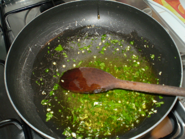 Privare le acciughe della testa e della lisca, lavare velocemente e asciugare con carta da cucina.Tritare finemente l'aglio e il prezzemolo. Mettere in una padella l'olio e far soffriggere il trito a fuoco molto dolce. Unire il peperoncino e le acciughe, far rosolare solamente un minuto,quindi unire l'aceto leggermente scaldato, incoperchiare e spengere il fornello. Servire subito con fette di pane tostato.