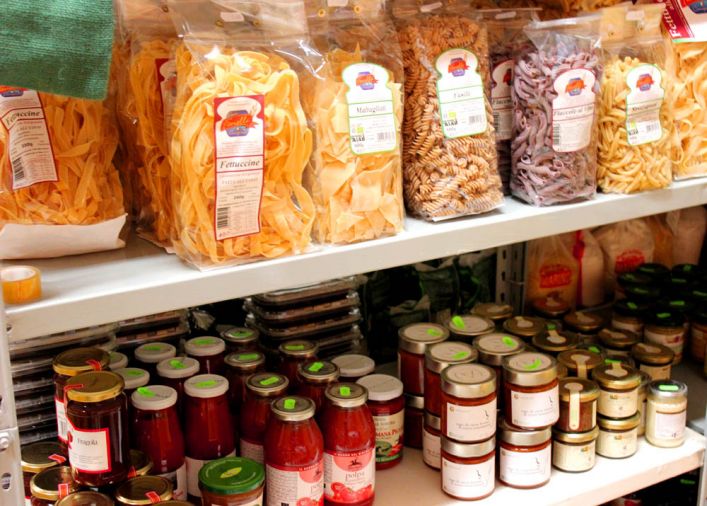 Abbigliamento, oggetti per la cancelleria e prodotti alternativi per la casa, giochi per bambini, libri, vino biologico, biscotti, farina, olio, birra, sughi, miele, marmellate, dolci e molto altro