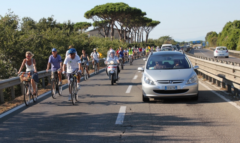 “La mobilità sostenibile e più in particolare la bicicletta – afferma Angelo Gentili, della segreteria nazionale di Legambiente – non sono più da considerarsi argomenti secondari. Basti pensare che sono sempre di più le persone che usano la bici per andare a lavoro, a scuola o per spostamenti quotidiani. In Italia dobbiamo fare i conti con 730 pedoni morti all'anno, il 35% sulle strisce, mentre in Maremma proprio quest'estate sono stati uccisi due pedoni nell'arco di tre giorni. E proprio per questo abbiamo messo una bici bianca in ricordo delle vittime, che sarà anche un monito per gli automobilisti che passeranno di là. Anche la sbiciclettata fatta da Grosseto a Rispescia, passando per la prima volta con oltre 50 bici sull'Aurelia, è stato un segnale forte per chiedere maggiore attenzione, rispetto e maggiore sicurezza per i ciclisti. Vogliamo trasformare Grosseto e la Maremma in un laboratorio nazionale per la ciclabilità, e per questo chiediamo siano realizzate più zone 30, Ztl e piste ciclabili”.
