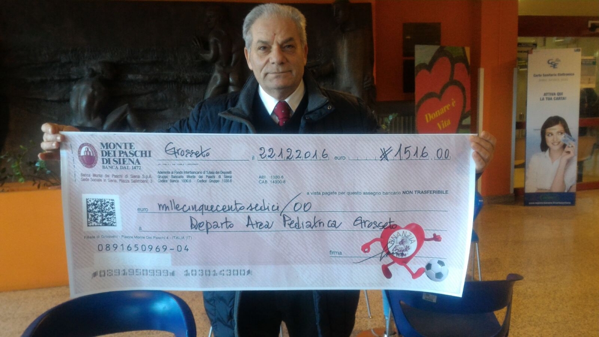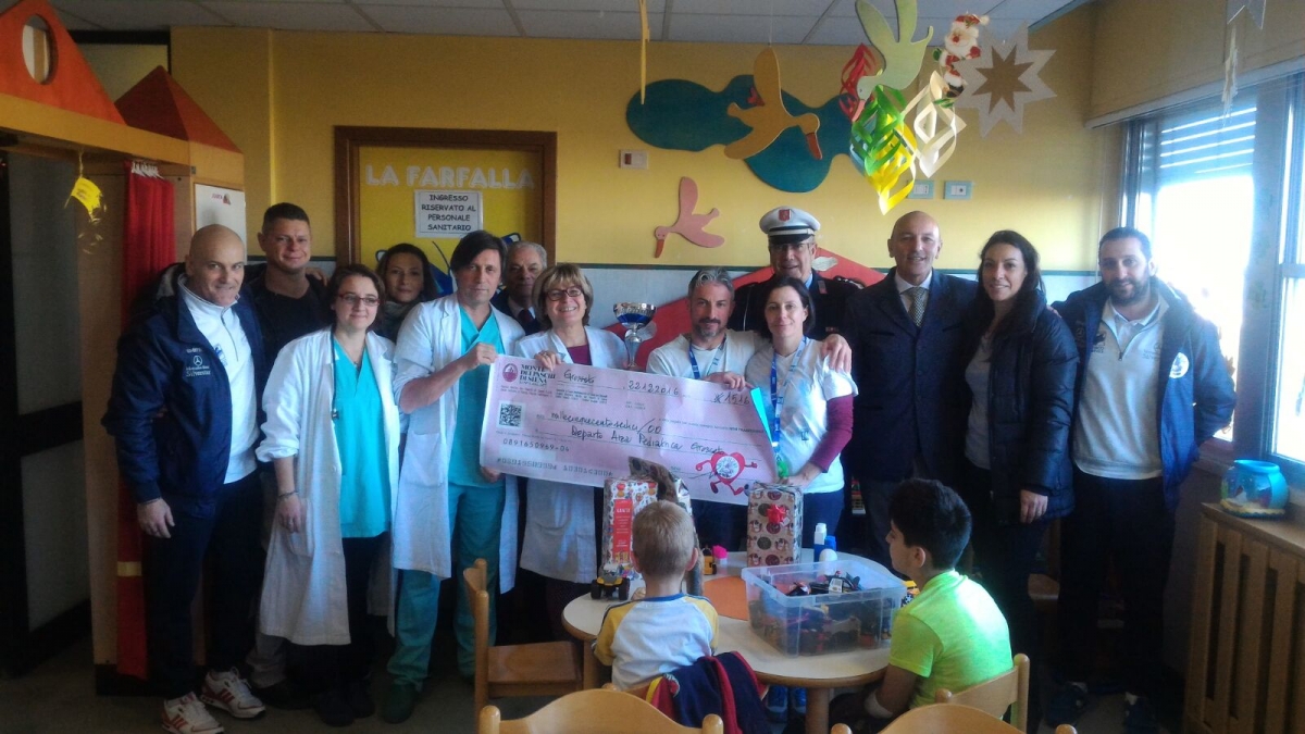 GROSSETO - Un Natale più felice per tutti i bambini del reparto pediatrico di Grosseto: il tutto grazie alla straordinaria gara di solidarietà messa in moto dal "Trofeo di Natale 2016", manifestazione ideata per coniugare divertimento, sport e solidarietà. Alla consegna del ricavato, insieme agli organizzatori del trofeo, era presente l'assessore Fausto Turbanti.
