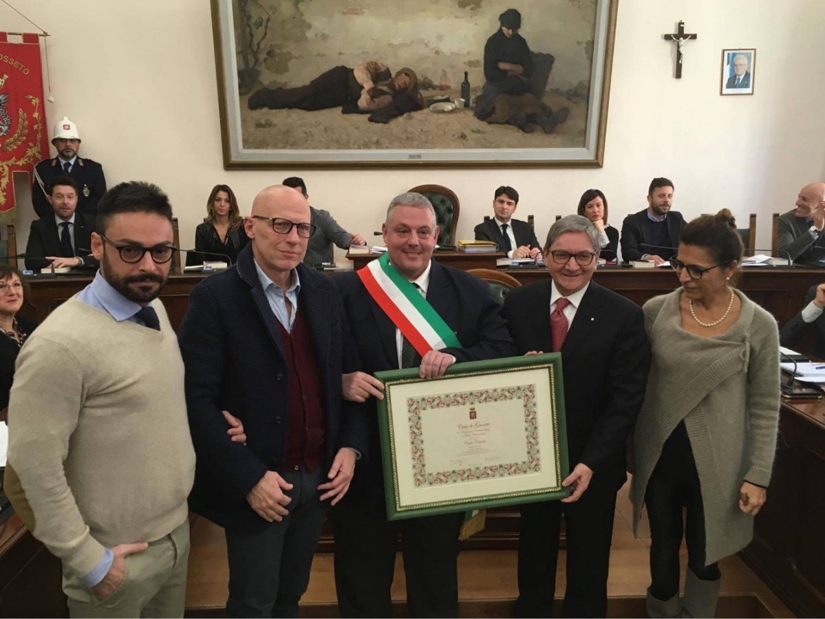 GROSSETO - Civica benemerenza in memoria dello scrittore Carlo Cassola. La Festa della Toscana è stata celebrata così, in Consiglio comunale, giovedì 30 novembre, alla presenza delle autorità. Il sindaco di Grosseto Antonfrancesco Vivarelli Colonna, assieme al presidente dell'assemblea Claudio Cosimo Pacella, ha consegnato nel corso dell'assemblea la pergamena alla famiglia dello scrittore, presente nella sala consiliare. “Quest'anno ricorre il centenario dalla nascita di Carlo Cassola – ha detto il primo cittadino - il quale ha vissuto per lungo tempo a Grosseto, dove peraltro ha anche ricoperto negli anni 1960-64 la carica di consigliere comunale, svolto attività di insegnante al liceo e composto numerose opere, tutte ambientate nella nostra terra, divulgandone quindi lo spirito e la conoscenza oltre i suoi confini”. Il Consiglio comunale è stata anche l'occasione per riconoscere la civica benemerenza a un bambino grossetano che ha salvato la vita a un uomo. La proposta è arrivata dai gruppi dell'opposizione consiliare che hanno proposto di premiare Luca Peruzzi Squarcia (10 anni), che il 3 agosto 2017 si è contraddistinto nel salvataggio di un uomo, con il quale si trovava in barca di ritorno da una battuta di pesca all'isola delle formiche: mentre il mezzo procedeva alla velocità di sette nodi, il conducente è caduto in acqua. “Luca, prontamente – si legge nella motivazione – ha dimostrato sangue freddo, ha spento i motori e ha ammarato il tender per raggiungere il suo compagno di viaggio. Questo non prima di aver lanciato due parabordi per salvarlo”. Il ragazzo ha preso il telefono e ha chiesto aiuto al padre, che ha allertato il proprietario di un'altra imbarcazione che si trovava in quello specchio d'acqua. La cerimonia ha visto la partecipazione del coro-orchestra della scuola secondaria Leonardo Da Vinci, istituto comprensivo 1 “Alberto Manzi”, con tre brani: l'Inno di Mameli, We are the world e Mite terra.