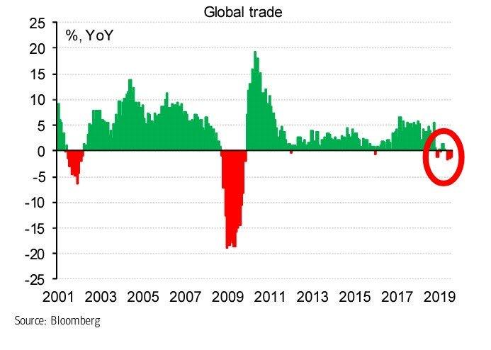 “E’ una situazione comunque interessante, perchè le ultime due volte in cui abbiamo osservato un rallentamento di questo tipo del commercio internazionale abbiamo avuto due recessioni sostanziali: la dotcom bubble all’inizio del millennio e la crisi finanziaria nel 2007. Ci sono ovvi motivi per pensare che questo rallentamento porterà a risultati simili. Personalmente, non credo che questo sarà l’esito questa volta, almeno non per gli Stati Uniti. La loro economia è come detto assai solida ancora.”