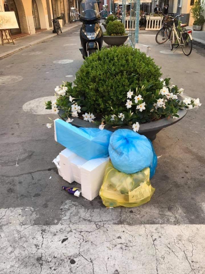 Follonica: Ecco cosa succede ai rifiuti della raccolta porta che vengono depositati sul marciapiede nel giorno errato (riferendoci alla foto); Stamattina veniva eseguita la raccolta dei rifiuti organici e il sacco dei rifiuti indifferenziati non è stato considerato, giustamente (a detta di coloro che apostrofano semplicemente come 'gente sudicia' chi lo fa).