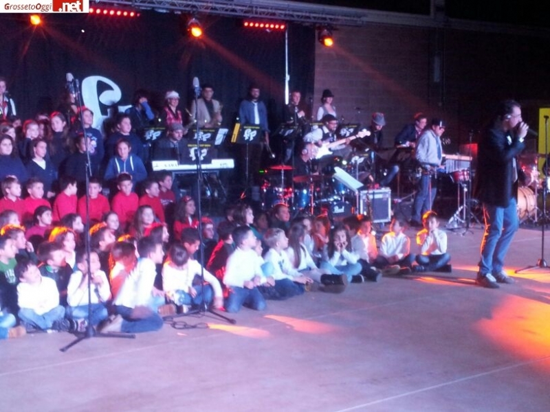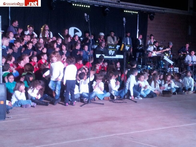 MANCIANO – Festa in grande, ieri sera, al Palazzetto dello sport di Manciano. Più di 200 bambini hanno partecipato al concerto di Natale organizzato con la scuola di musica Chiti, riproponendo brani della tradizione natalizia e dei grandi cantautori italiani. Sul “palco” non solo gli studenti della primaria, ma anche i piccoli che frequentano l’infanzia dell’istituto comprensivo Pietro Aldi di Manciano. Uno spettacolo che è stato allestito grazie al progetto didattico, proposto da Michele Santinelli direttore dell’orchestra False partenze, che si è reso disponibile a dirigere i bambini in modo da poterli avvicinare alla musica. Il gran finale è stato infatti preceduto da due mesi di prove che sono stati resi possibili anche dalla disponibilità dimostrata dalle insegnanti, entusiaste dell’iniziativa didattica proposta a costo zero.