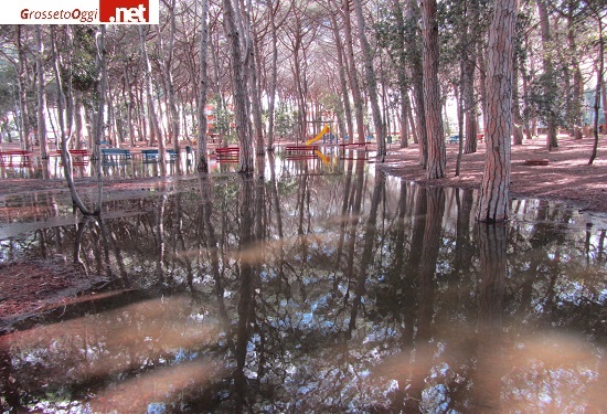 FOLLONICA – Nella Città del golfo lo stato di conservazione delle pinete è già stato in passato al centro dell'attenzione ma, adesso, una in particolare solleva nuove riflessioni sul suo futuro. La pineta di Levante, tra il quartiere Senzuno e la zona Salciaina, dopo il nubifragio della settimana scorsa presenta in più punti veri e propri stagni d'acqua, alcuni anche di 30 centimetri, che ha portato molti follonichesi a ribattezzarla “il padule di Levante”.