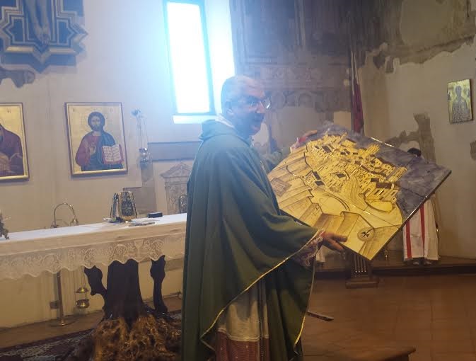 All’inizio della liturgia domenicale, molto curata, due parrocchiani a nome della comunità hanno letto un saluto di ringraziamento a don Giorgio, ricordando quel 24 febbraio 1984 quando quel “giovane e baldanzoso prete” salì “sulla collina”. “In breve tempo – hanno sottolineato – la tua vitalità contagiosa e la tua autorevolezza hanno fatto breccia. Sei da subito diventato parte di noi col tuo sorriso gioviale, la tua serena fiducia. Di tempo ne è passato dal tuo arrivo, sei diventato monsignore, hai vissuto missioni di pace all’estero, ma continui a essere il parroco della tua prima comunità”.