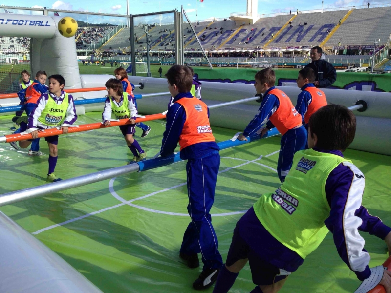 FOLLONICA - Dopo il successo della passata stagione si rinnova la partnership tra Acqua Village e Acf Fiorentina, grazie al contributo di Gsport, uniti nell’iniziativa “Human Football” che ha permesso ai bambini dagli 8 ai 13 anni di giocare all’interno dello stadio Franchi di Firenze e di vincere ingressi gratuiti per tutta l’estate 2014 ai parchi acquatici di Cecina e Follonica. Si rafforza ancora di più, dunque, il rapporto tra l’azienda leader dei parchi acquatici e il mondo dello sport. La conferma di questo importante accordo lancia il marchio Acqua Village ad un livello superiore dopo le partnership già avviate con Sammontana, Coop e Mc Donald’s. Nato dalla collaborazione tra Acqua Village, Acf Fiorentina e Gsport, Human Football è un innovativo progetto di entertainment sportivo basato sul calcio balilla umano indirizzato a bambini tra gli 8 e i 13 anni che porta il calcio ad una nuova “dimensione”. I piccoli atleti sono potuti entrare in gioco, e continueranno a farlo sino al 18 maggio (data dell’ultima sfida di campionato con il Torino) sostituendosi ai player abituali, per vivere le emozioni da una prospettiva del tutto nuova: l’interno. Il fascino unico di giocare dentro lo stadio Franchi, cuore pulsante della Viola, ma in una forma che mai prima d’ora aveva segnato la storia di questo impianto. Un torneo all’inglese che ha fatto e farà provare a tutti i partecipanti le sensazioni uniche di sfide divertenti con eliminazione diretta, premiando i ragazzi della squadra prima classificata con un ingresso gratuito per tutta l'estate 2014 nei parchi acquatici Acqua Village di Cecina e Follonica. Human Football è partito ufficialmente.