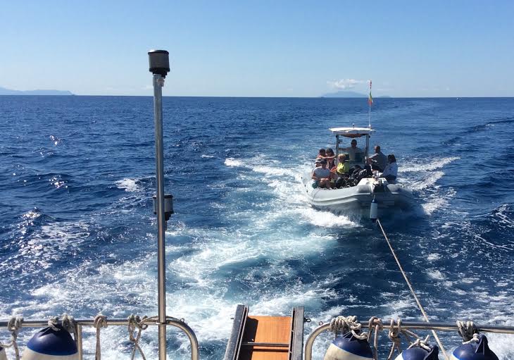 Pertanto la M/V della Polizia di Stato, contattati gli enti preposti per il soccorso in mare al fine di un'immediata segnalazione della richiesta di soccorso visivamente ricevuta, abbordava repentinamente il natante: il gommone, appartenente ad un "diving" proveniente da una località marittima costiera, aveva il motore in avaria e non era più governabile.